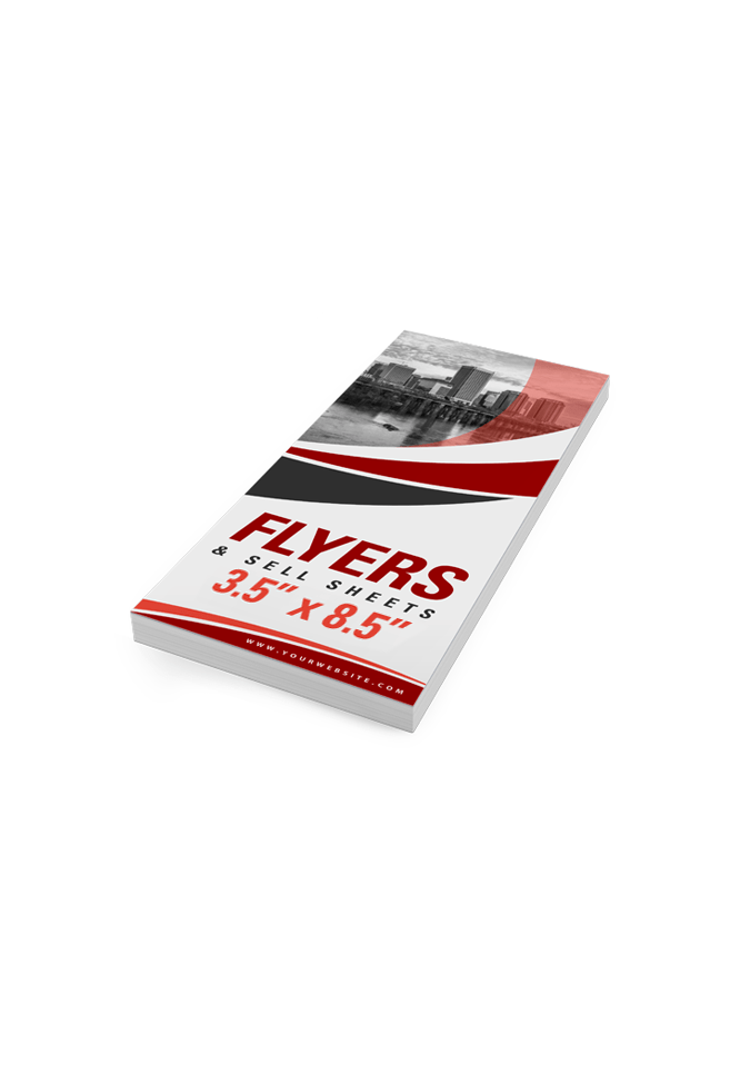 Flyers & Sell Sheets will help you spread the word about your products, services, sales and events. Use these 3.5″ x 8.5″ Flyers & Sell Sheets as hand-outs, take-aways and mail inserts and more to reach your customers and prospects. We’ll print your copies quickly without exceeding your budget, so you can get the word out fast and effectively.