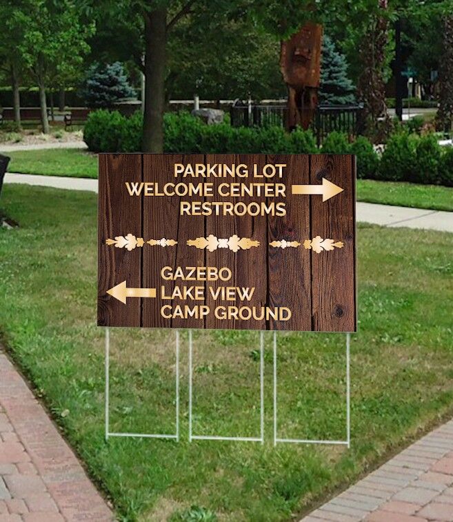 These signs are meant to be “stepped” into the ground in grass, mulch or other natural areas. Price includes printed panel and step stake(s).