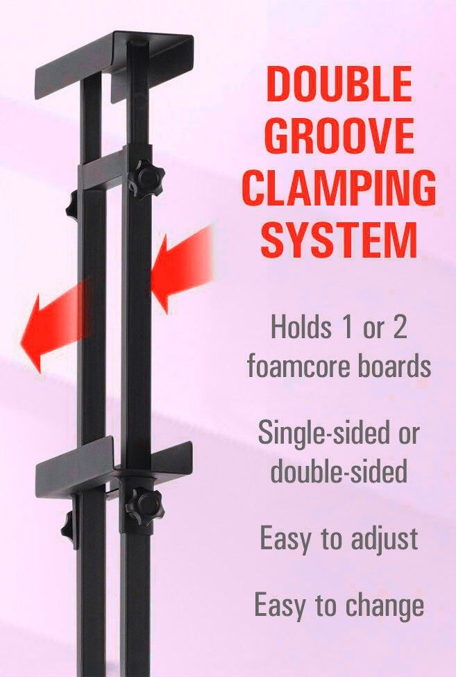 - Height Adjustable: Easily adjust the stand to suit nearly any poster size (4″ – 72″), ensuring your message is always at eye level.
