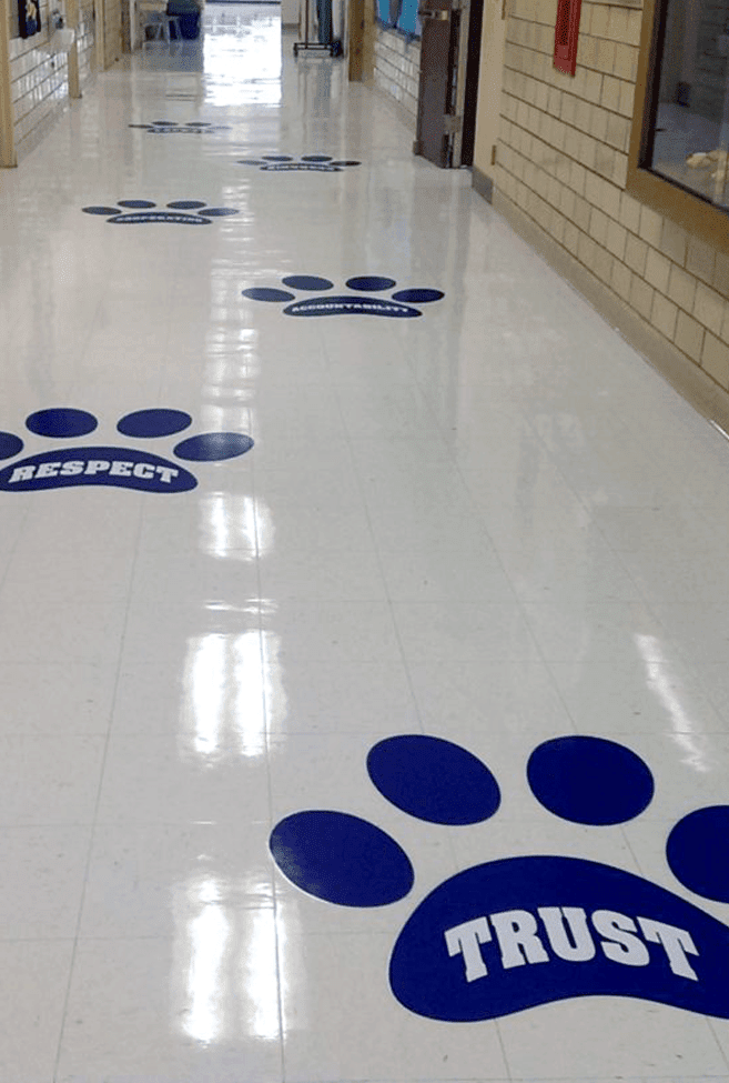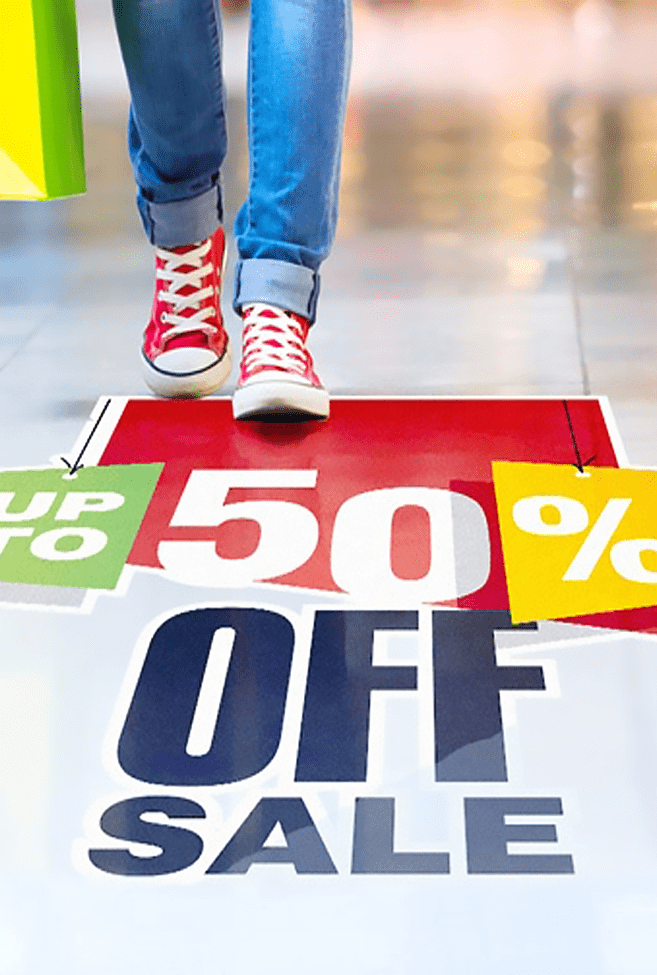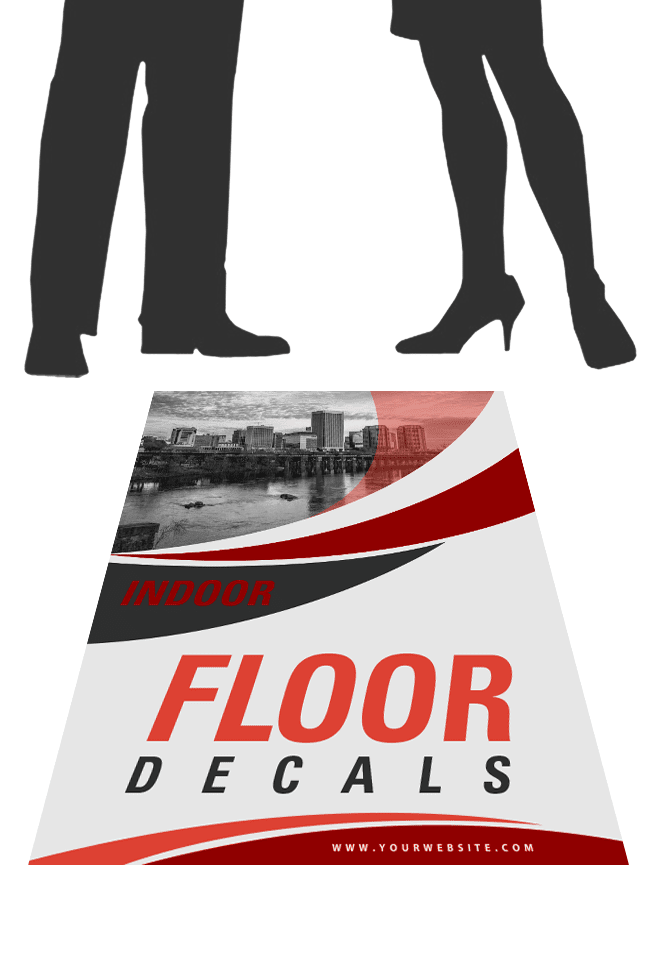 Indoor Floor Decals can be cut to square/rectangular shapes, circles/ovals, or custom cut to any shape. If you choose Contour/Shape cut, your cut shape should be a vector path. If you have color to the edge of your decal, that color should extend 1/8″ beyond the cut path. If you have any questions about those requirements, please Contact Us and we will help.