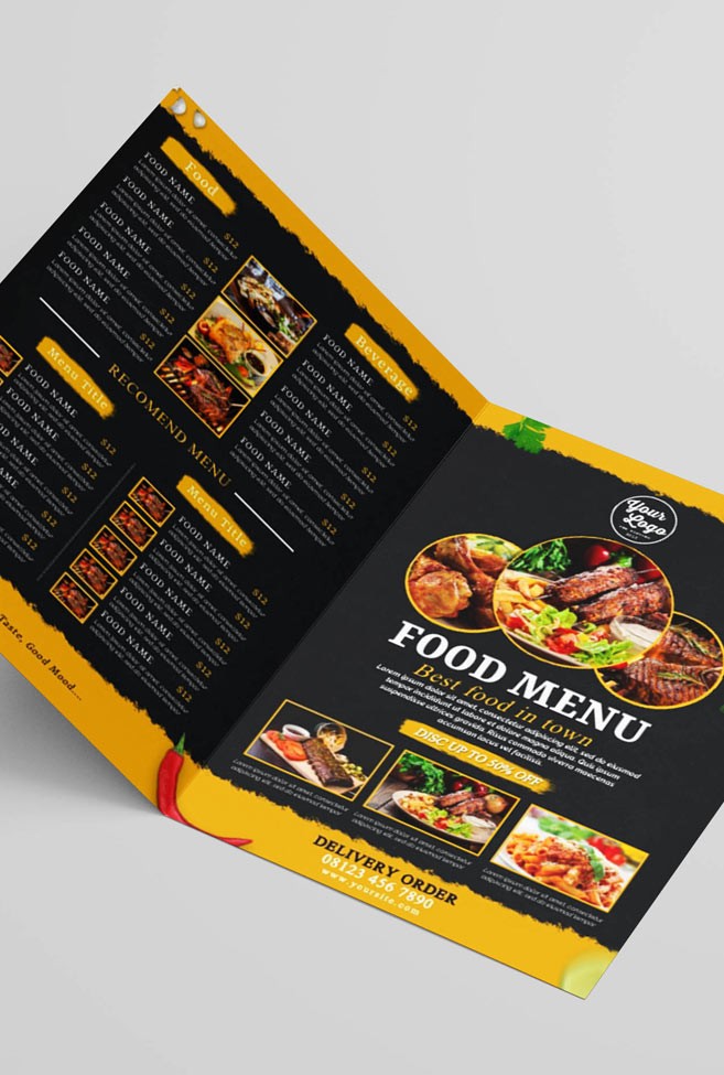 Custom printed bi-fold menus printed on your choice of five different paper materials.